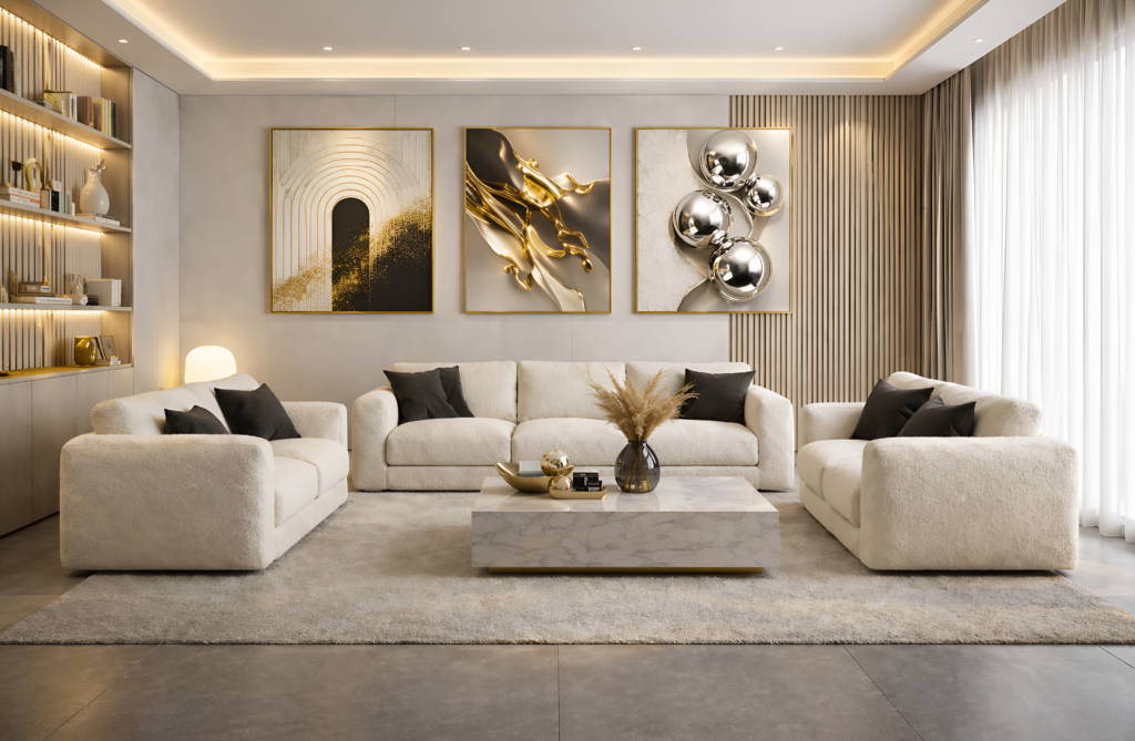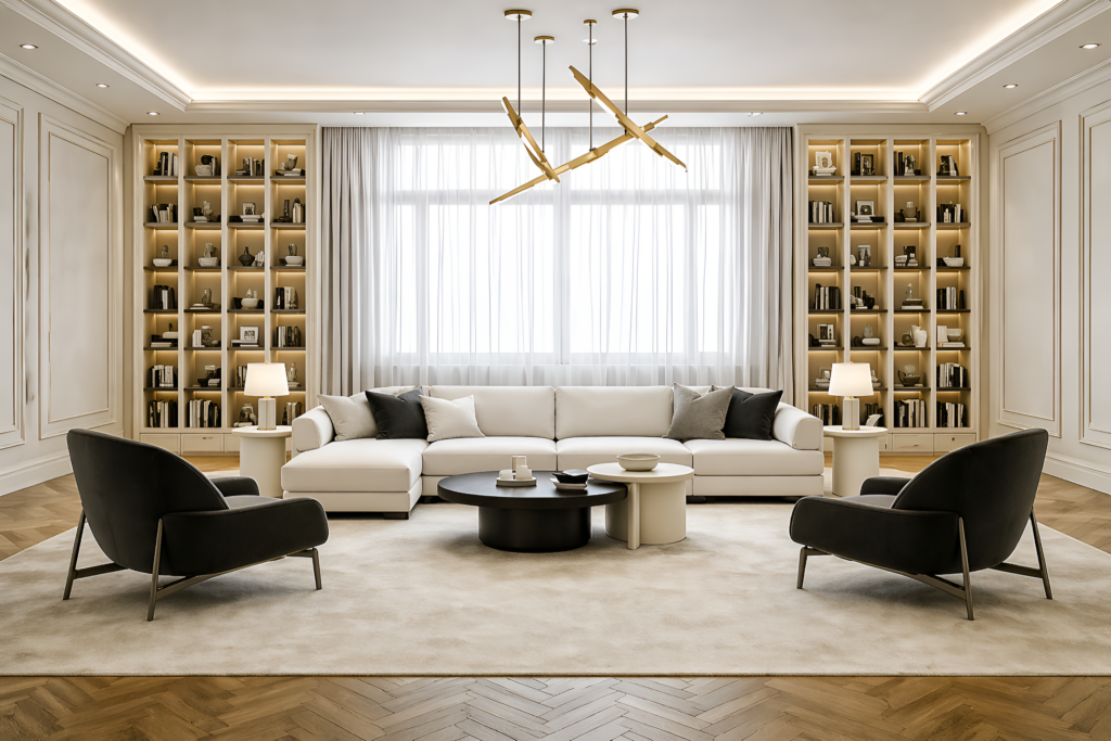 Neutral tones like beige, ivory, grey, and soft pastels instantly elevate a space. These colors create a calm and cohesive environment often associated with luxury interiors.