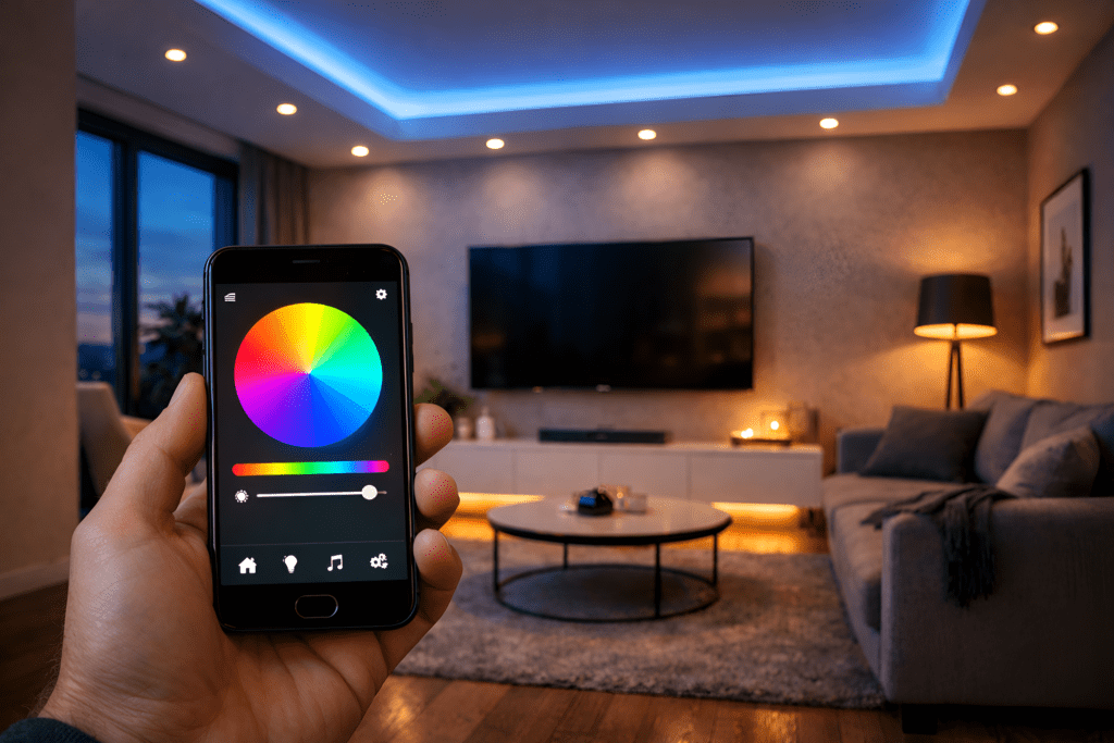 Lighting is one of the most powerful design elements in any home. Smart lighting systems allow homeowners to control brightness, colour temperature, and mood using smartphones or voice assistants.