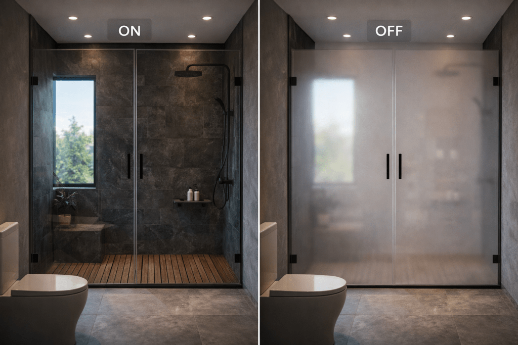 Luxury bathrooms – Adds privacy, elegance, and a modern touch to high-end bathroom designs.