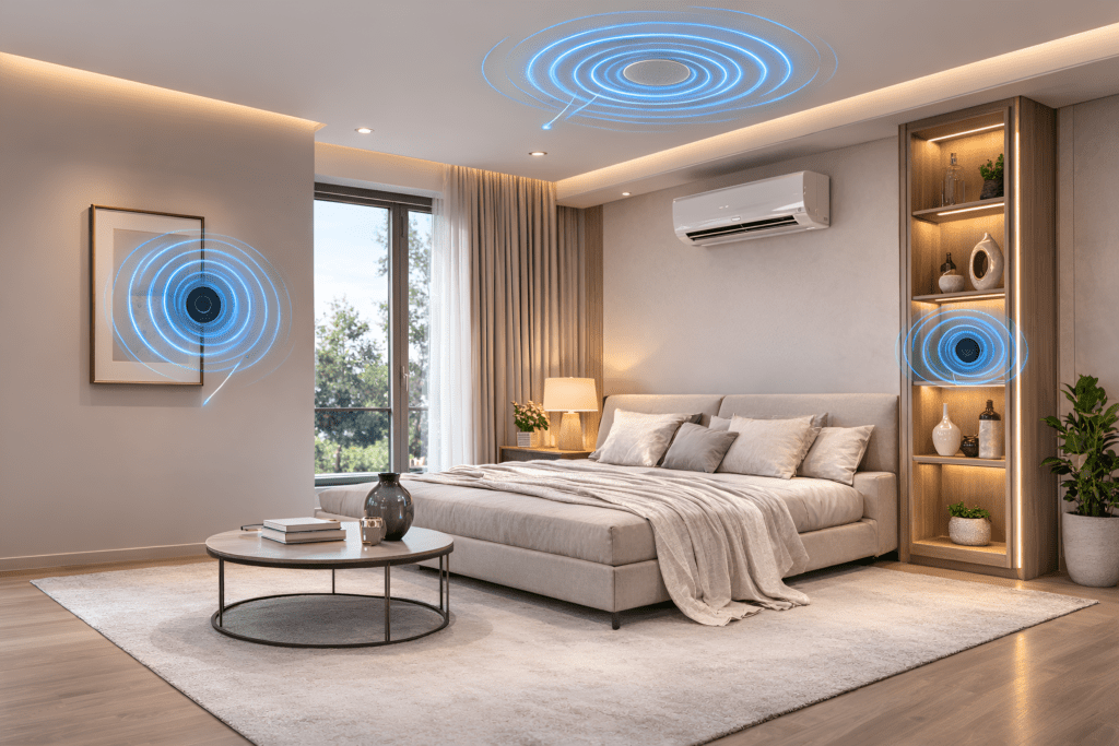 Visible speakers can disrupt a well-designed interior. Modern homes now use hidden audio systems integrated into walls, ceilings, or furniture.